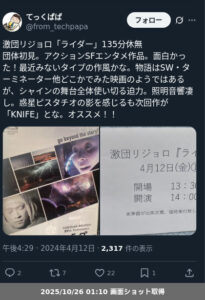 | 日時場所 | 2024/04/12(金)~2024/04/21(日) シアターシャイン(東京都) |