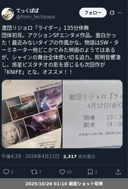 | 観劇日時 | 2024年04月12日 14時00分〜 |