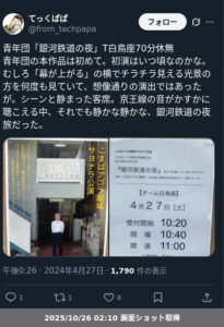 【観劇メモ】青年団 「銀河鉄道の夜」