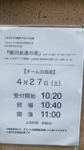 | 観劇日時 | 2024年04月27日 11時00分〜 |