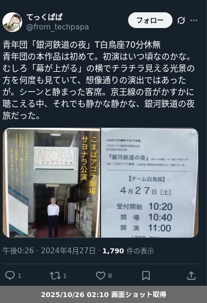 | 観劇日時 | 2024年04月27日 11時00分〜 |