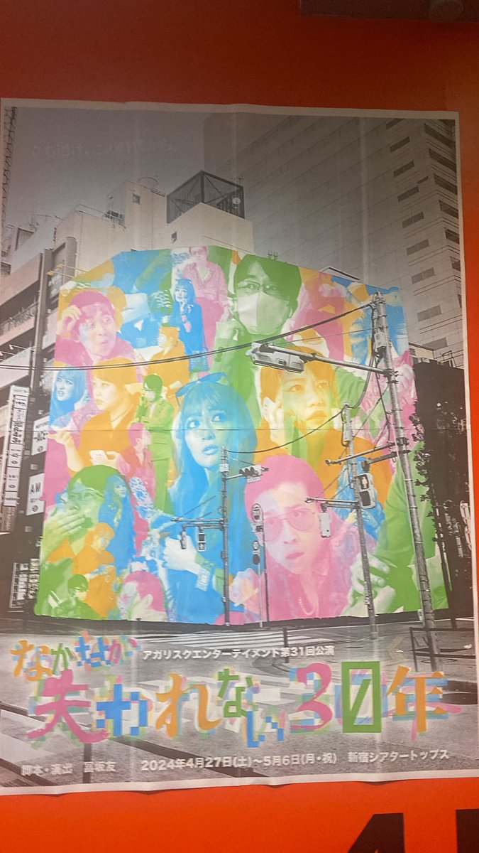 2024年4月30日、新宿区歌舞伎町のカワダビル4Fにある劇場跡地を片付けているビルオーナーの目の前に、全ての時代が同時に現れた。アガリスクエンターテイメントの第31回公演は、移り変わりの激しい新宿の雑居ビルを舞台に、平成から令和のさまざまな場面を一部屋にムリヤリ押し込んで総括する、時間混在コメディ。