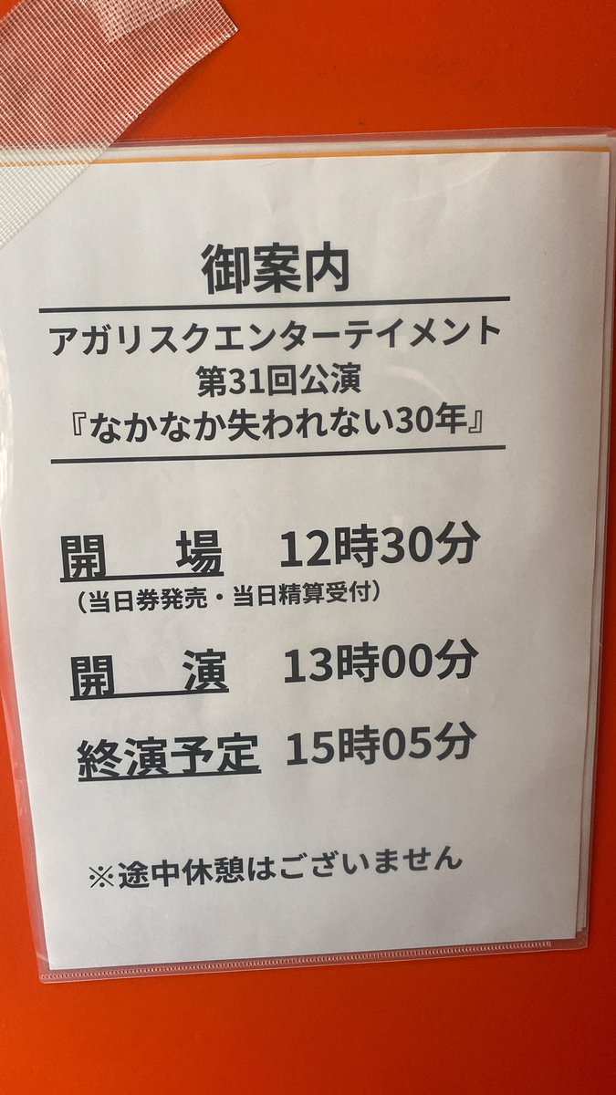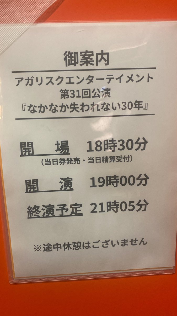 【観劇メモ】Aga-risk Entertainment 「なかなか失われない30年」