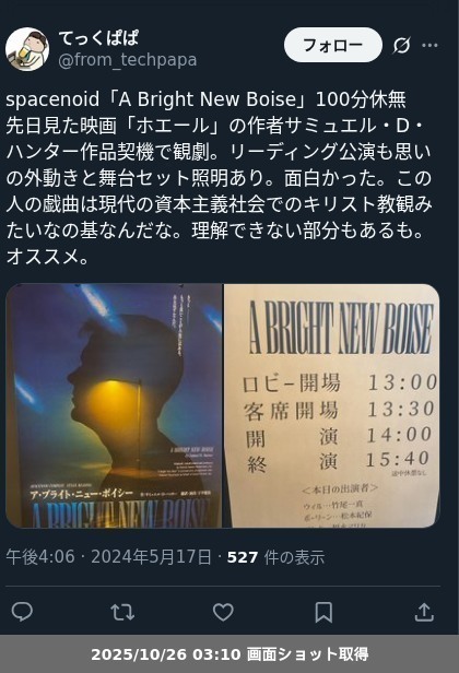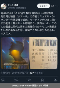 【ネタバレ分離】 spacenoid「A Bright New Boise」の観劇メモです。