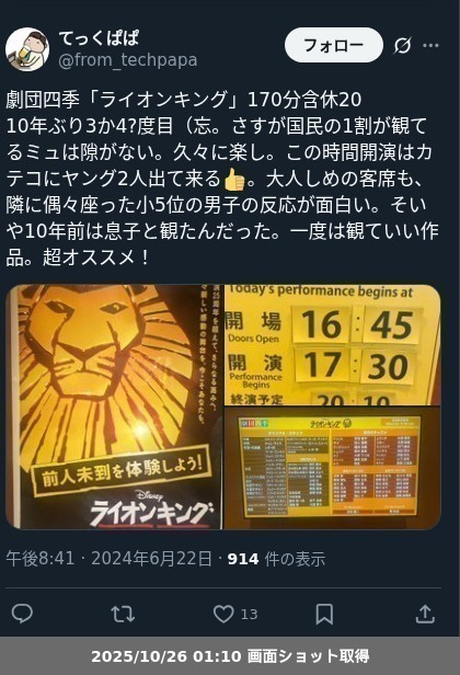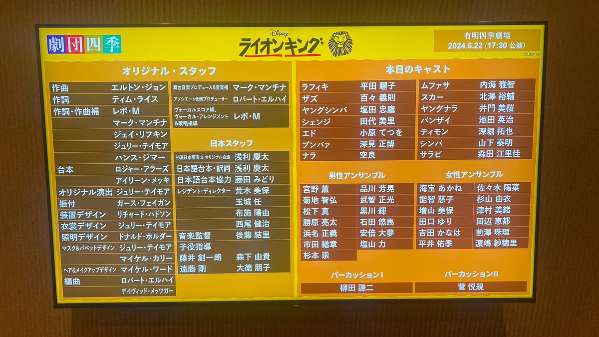 【ネタバレ分離】 劇団四季「ライオンキング」の観劇メモです。