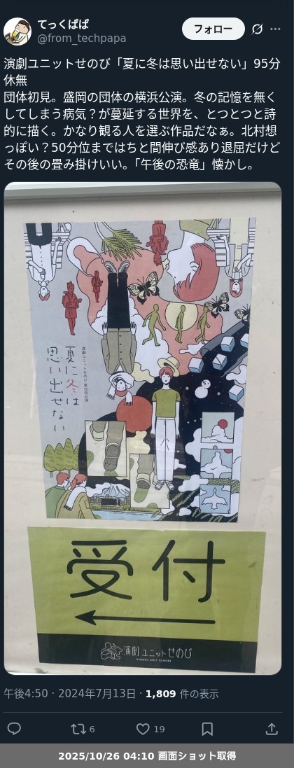 【ネタバレ分離】 演劇ユニットせのび「夏に冬は思い出せない」の観劇メモです。