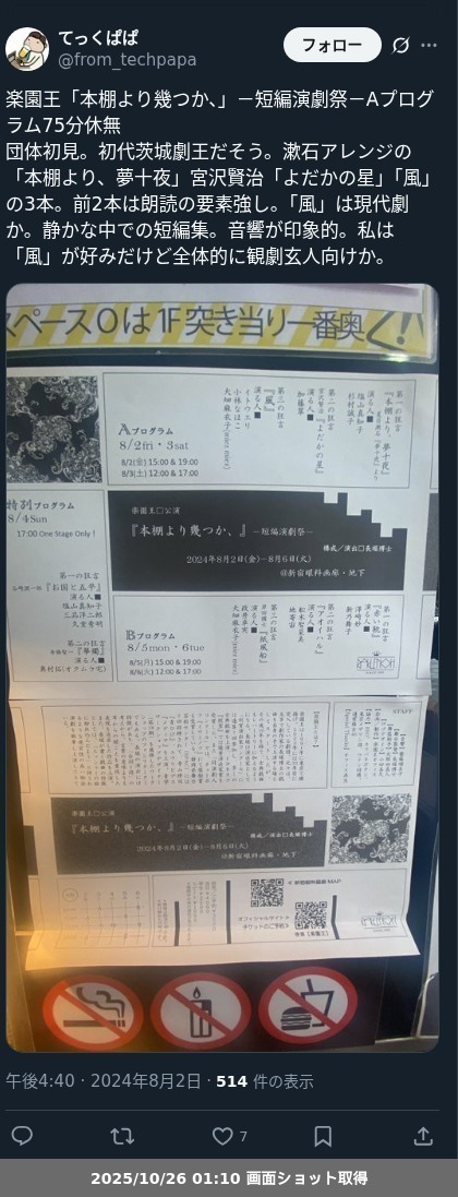 | 題 | 『本棚より幾つか、』-短編演劇祭- |
