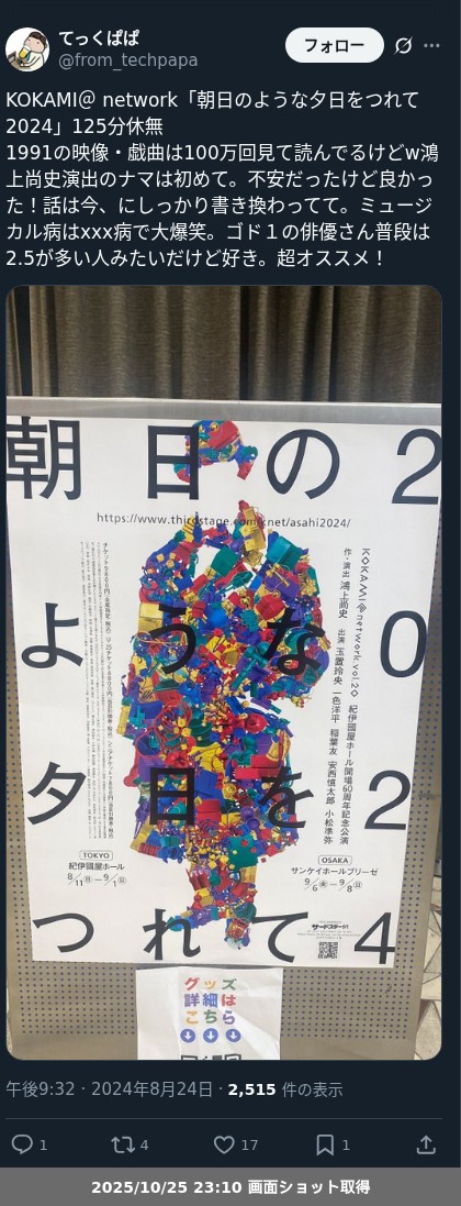 【ネタバレ分離】 KOKAMI@network「朝日のような夕日をつれて2024」の観劇メモです。