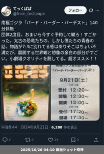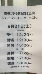 【観劇メモ】南極ゴジラ「バード・バーダー・バーデスト」