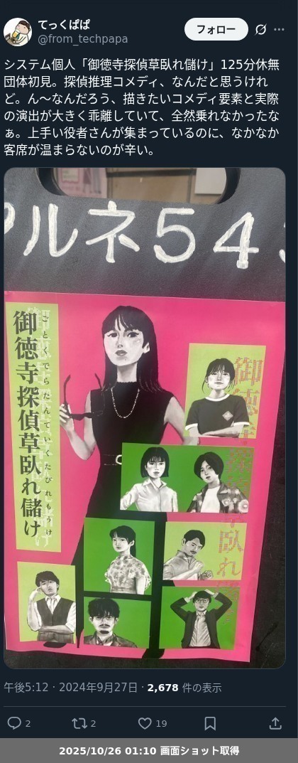 【観劇メモ】システム個人「御徳寺探偵草臥れ儲け」
