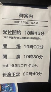 | 観劇日時 | 2024年10月18日 19時30分〜 |