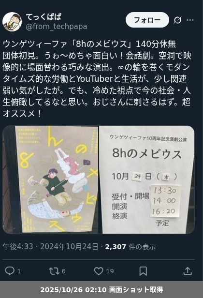 | 観劇日時 | 2024年10月24日 14時00分〜 |