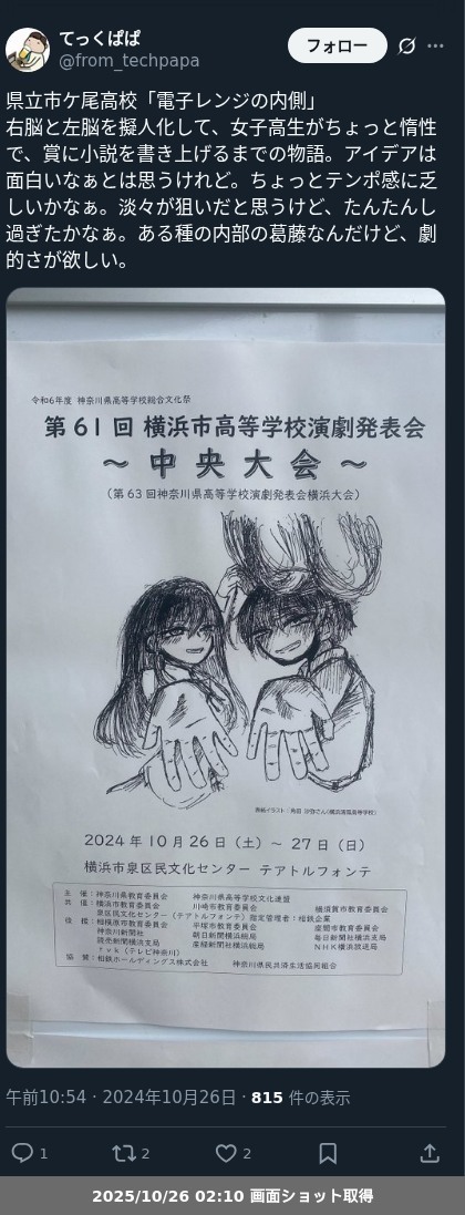 - 2023年11月26日 第76回 千葉県高等学校演劇研究中央発表会(高校演劇 千葉県県大会) ・・・「#高校演劇」のつづき