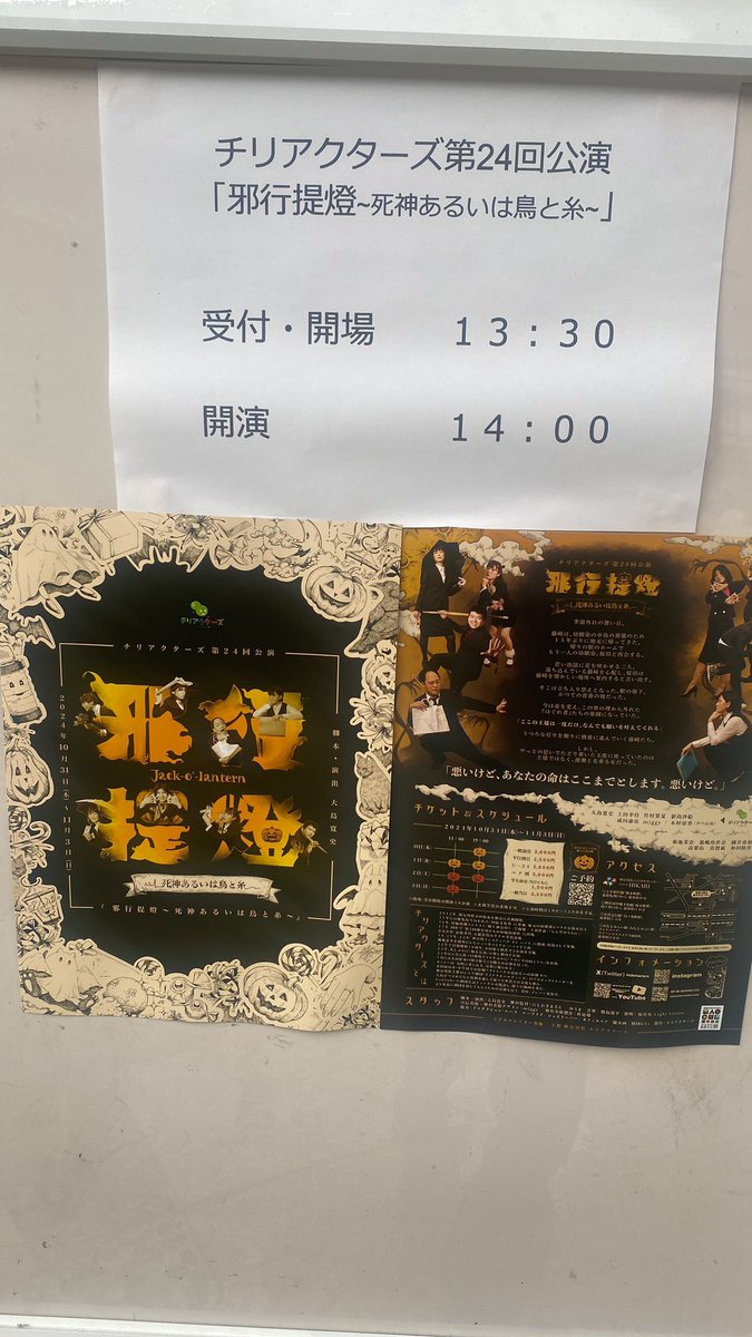 【ネタバレ分離】 チリアクターズ「邪行提燈」の観劇メモです。