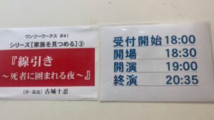 【ネタバレ分離】 ワンツーワークス「線引き~死者に囲まれる夜~」の観劇メモです。
