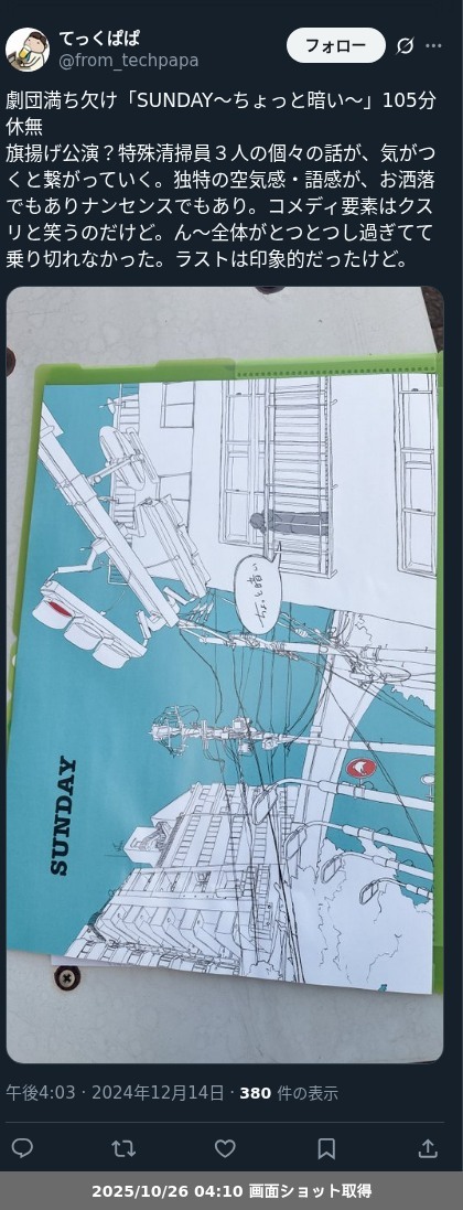 【ネタバレ分離】 劇団満ち欠け「SUNDAY~ちょっと暗い~」の観劇メモです。