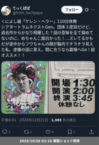 | 観劇日時 | 2024年12月21日 14時00分〜 |