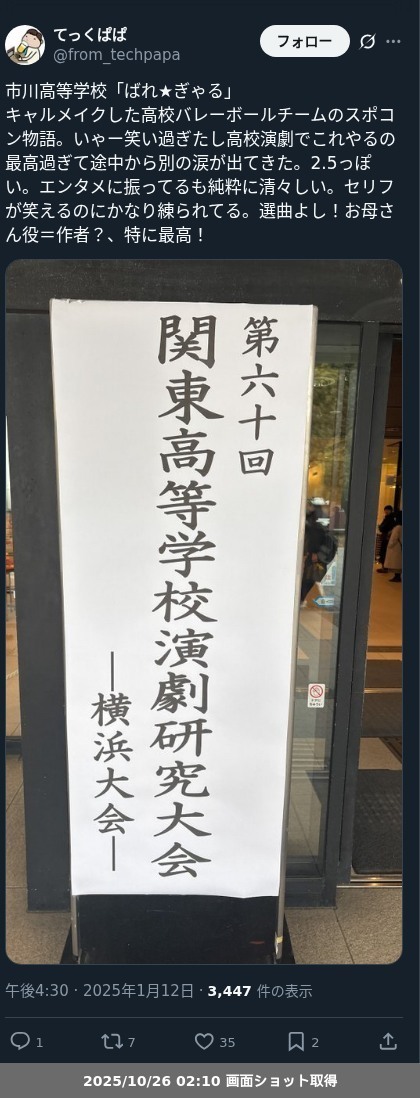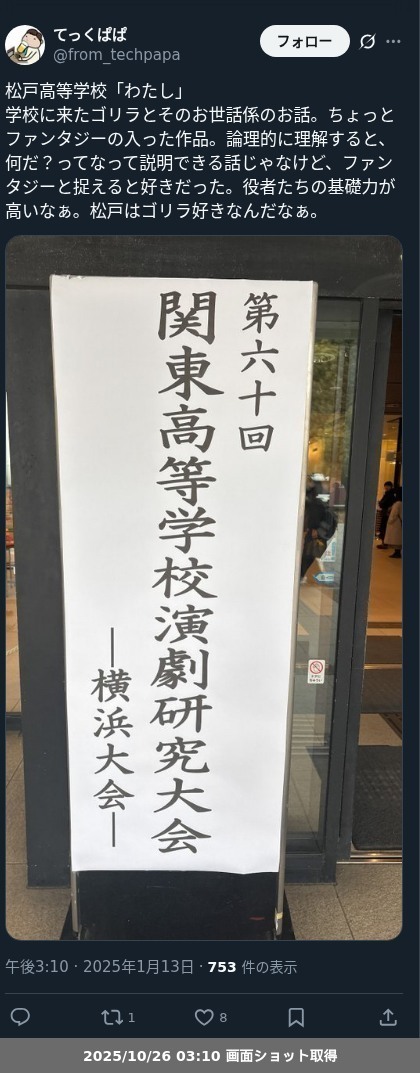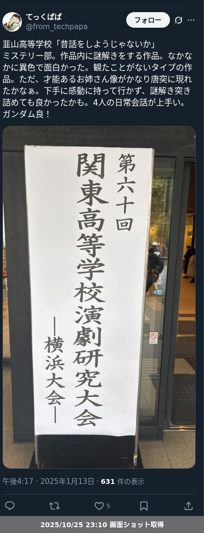 - 2023年11月26日 第76回 千葉県高等学校演劇研究中央発表会(高校演劇 千葉県県大会) ・・・「#高校演劇」のつづき