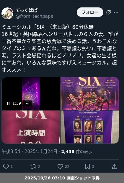 【ネタバレ分離】 ミュージカル「SIX」(来日版)の観劇メモです。