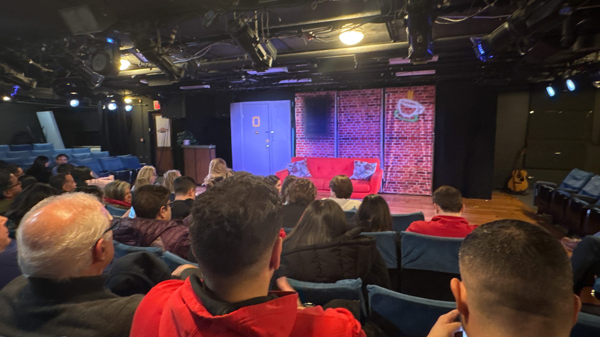 21時30の遅い開演時間なのに、前の演目の終演が押して30分遅れて始まる。(ちなみに前の演目は「The Office」っていうこれもドラマのパロディ。日本ではあんまり流行ってないかも。私もSeason 1だけ観て辞めた)この劇場はパロディ専門なのか、という感覚。規模的には、Off-Off Broadwayといっても良い位の客席と、舞台セットのクオリティ。一抹の不安を覚えるも。