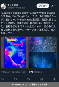 【観劇メモ】New World Stages 2「Gazillion Bubble Show」