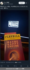 - On Broadwayで、2025年TONY賞のeligibilityのある最新の作品。日本でも放送される授賞式を見ながら、もし賞の候補に選ばれたらお酒を片手に「あーだこーだ」言いたい。(笑)
