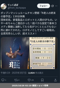 【ネタバレ分離】 ポップンマッシュルームチキン野郎「R老人の終末の御予定」の観劇メモです。