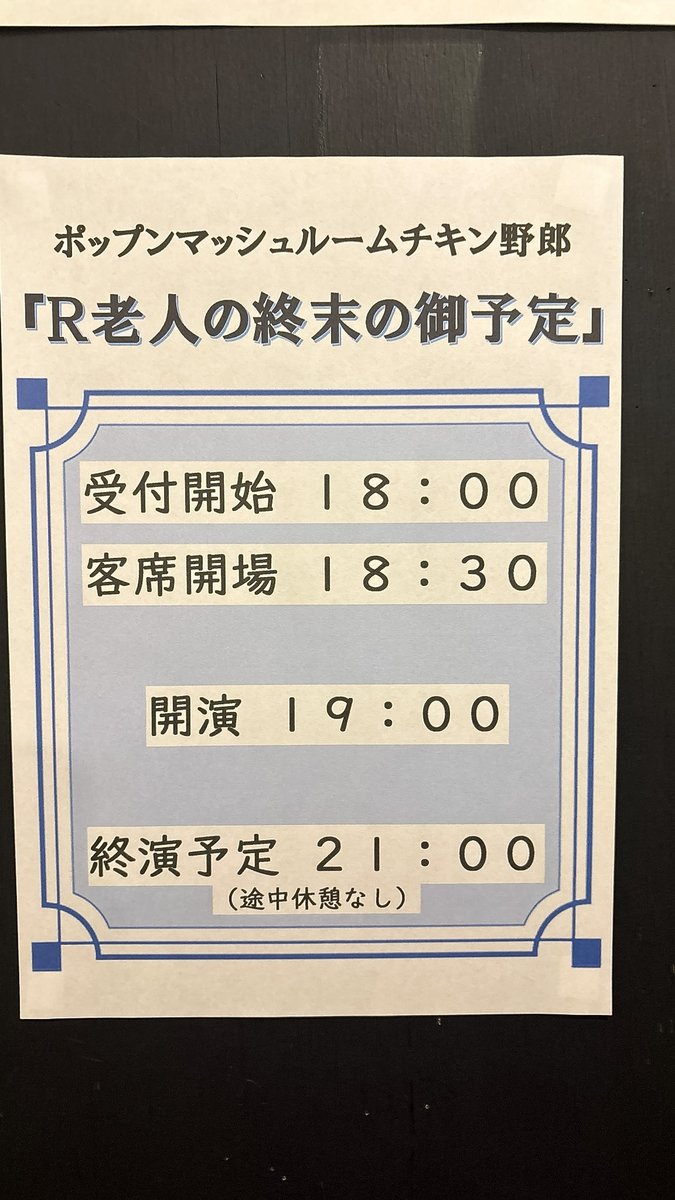 【ネタバレ分離】 ポップンマッシュルームチキン野郎「R老人の終末の御予定」の観劇メモです。