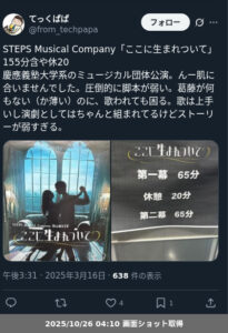 【ネタバレ分離】 STEPS Musical Company「ここに生まれついて」の観劇メモです。
