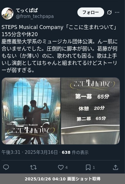 | 観劇日時 | 2025年03月16日 12時45分〜 |
