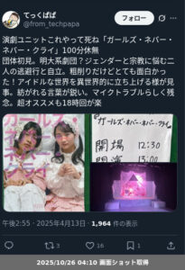 | 観劇日時 | 2025年04月13日 13時00分〜 |