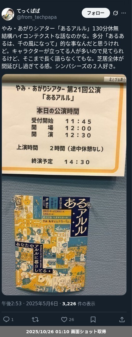 | 観劇日時 | 2025年05月06日 12時30分〜 |