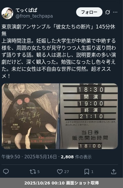 | 観劇日時 | 2025年05月16日 19時00分〜 |