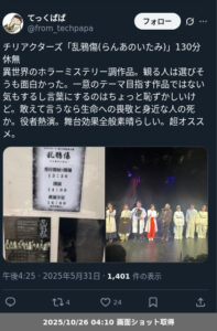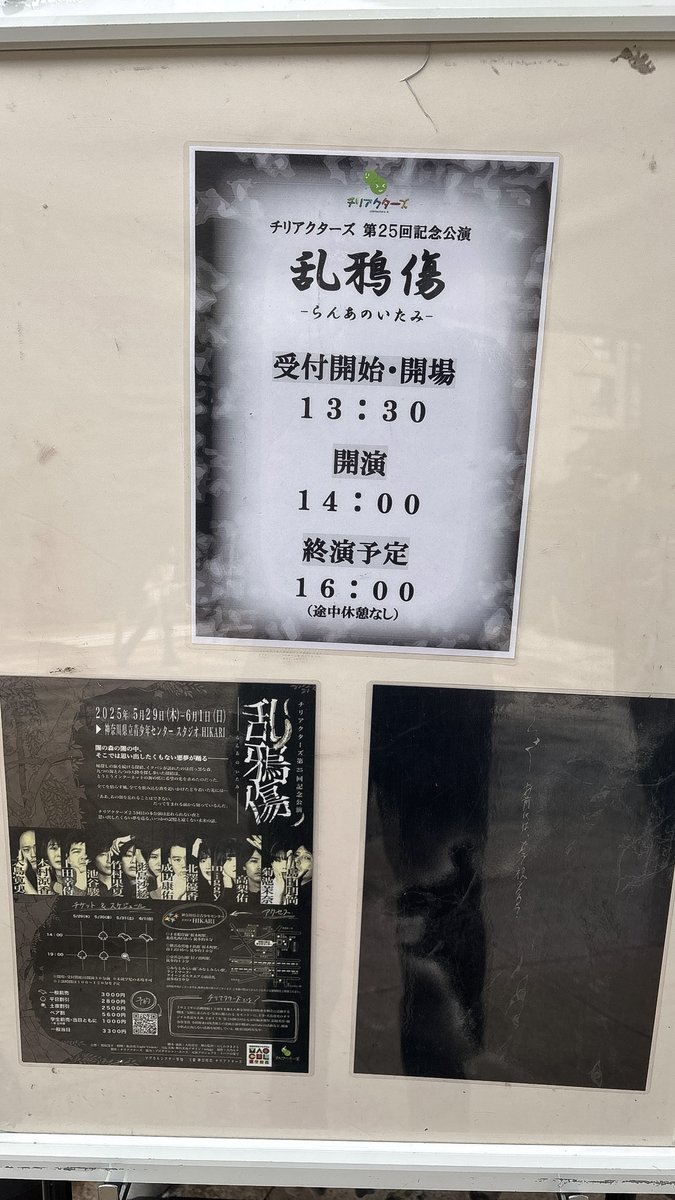 【ネタバレ分離】 チリアクターズ「乱鴉傷(らんあのいたみ)」の観劇メモです。
