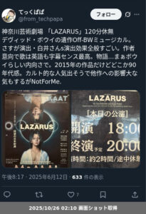 【ネタバレ分離】 イープラス/キョードー東京/KAAT神奈川芸術劇場 「LAZARUS」の観劇メモです。