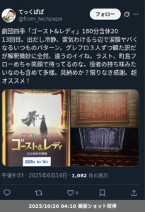 - 2024年11月08日 劇団四季 「ゴースト&レディ」(2024東京) ・・・「#劇団四季」のつづき