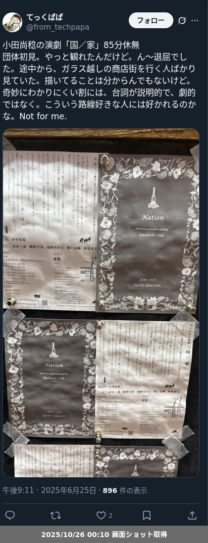 | 観劇日時 | 2025年06月25日 19時30分〜 |
