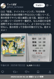 【ネタバレ分離】 ロロ「校舎、ナイトクルージング」の観劇メモです。
