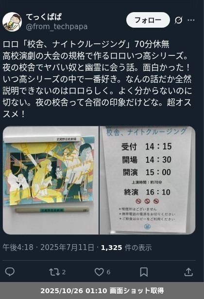 | 観劇日時 | 2025年07月11日 15時00分〜 |