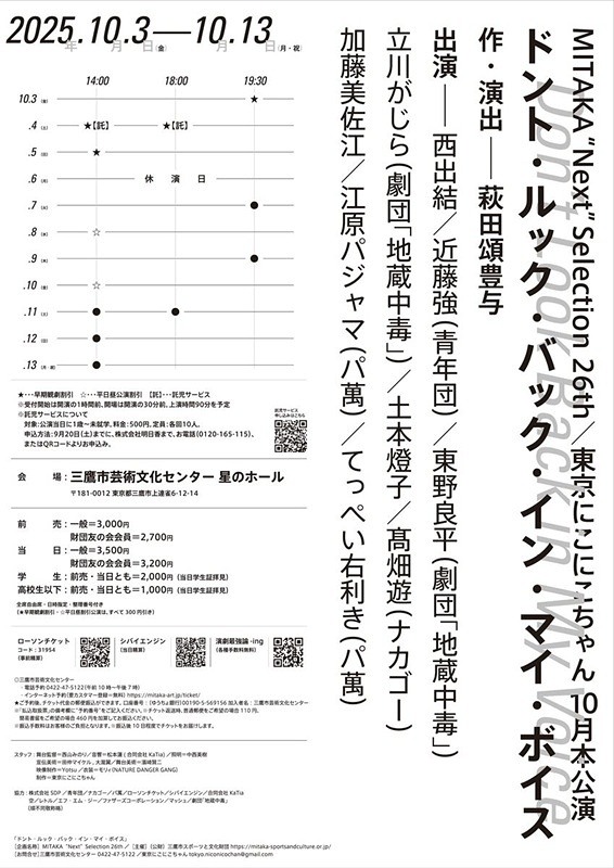 日時場所 | 2025/10/03(金)~2025/10/13(月) 三鷹市芸術文化センター星のホール(東京都) |