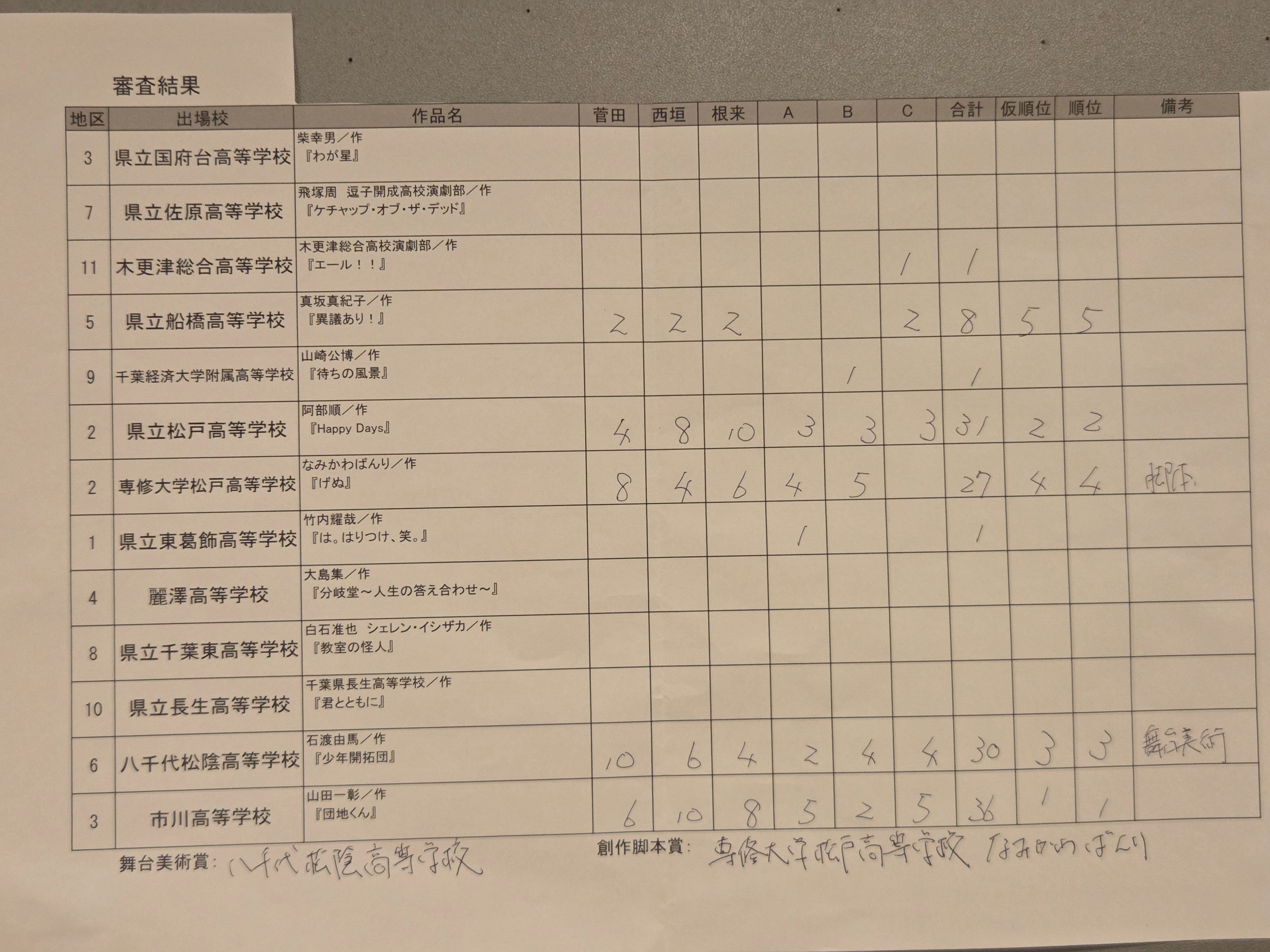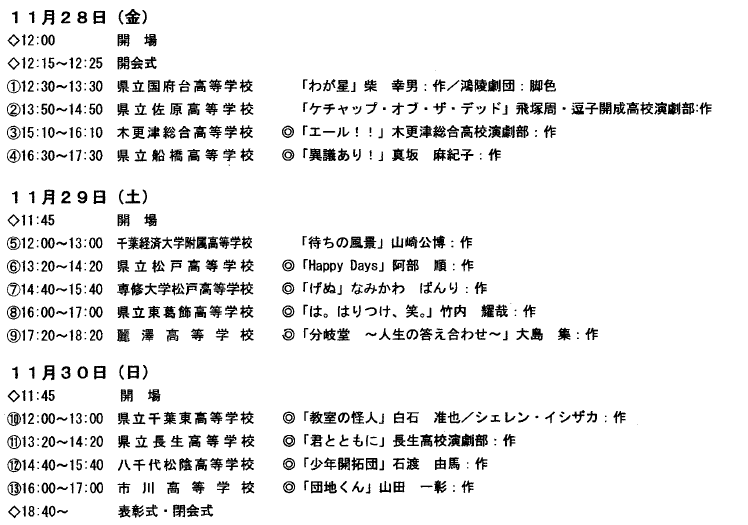 | 3 | 木更津総合高等学校 | エール!! | 作:木更津総合高校演劇部 〇 | 11/28 15:10- |
