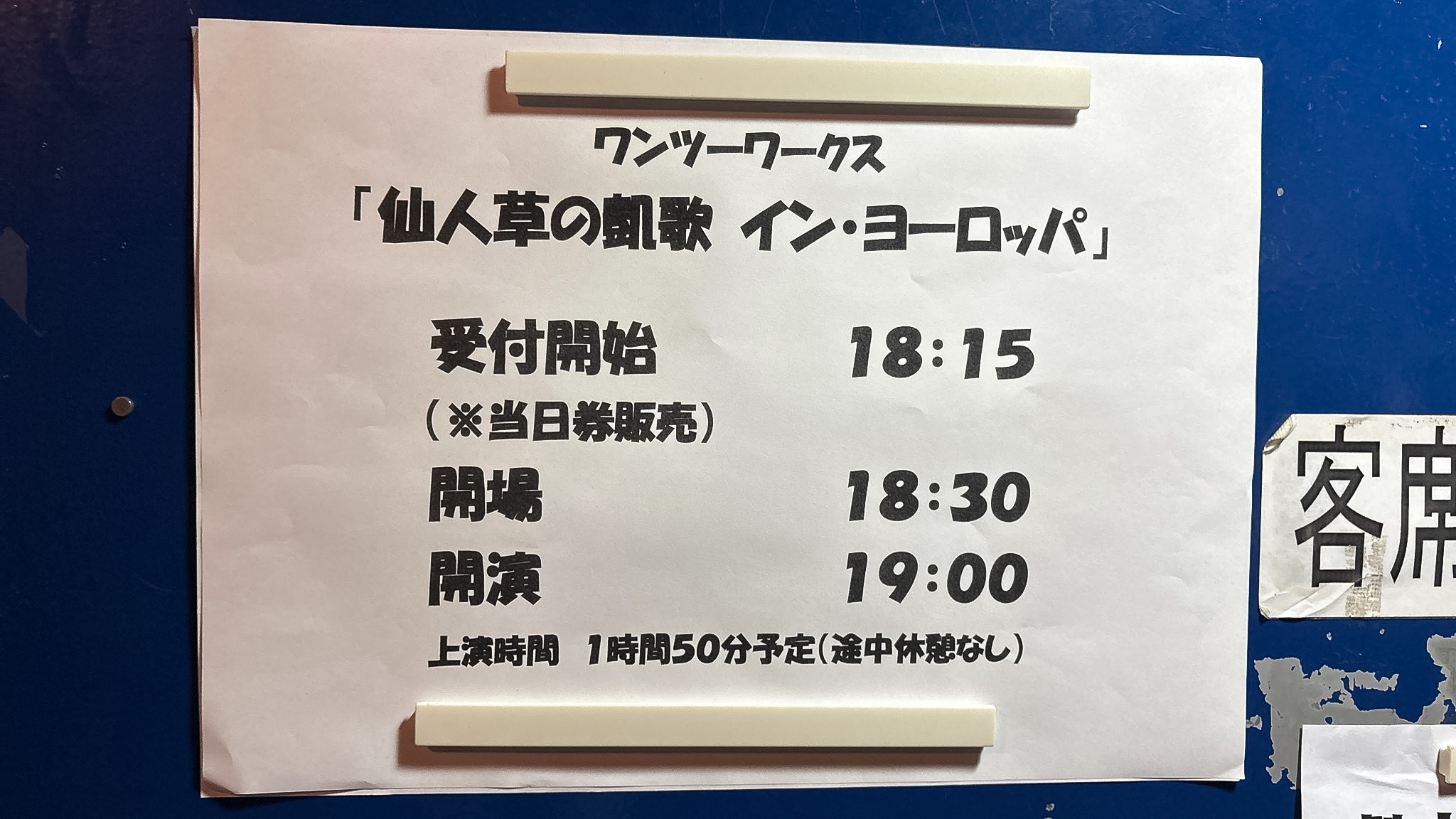 【ネタバレ分離】 ワンツーワークス「仙人草の凱歌イン・ヨーロッパ」の観劇メモです。