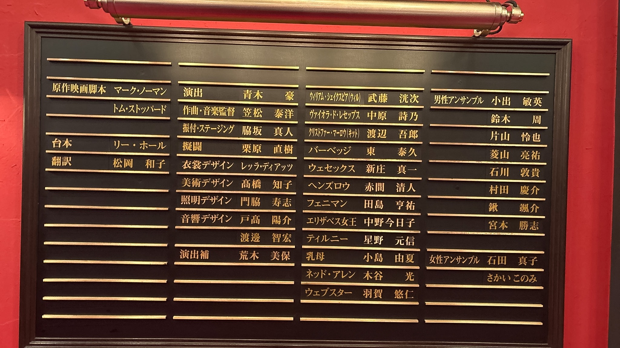 「ウィキッド」のフィエロ役で観た武藤洸次がいい。まさに風貌他なにもかもが若かりしシェイクスピア。以前、こちらも「ウィキッド」のマダム・モリブル役で良く拝見していた中野今日子。久しぶりに観れて嬉し。