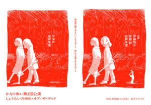 団体初見。タイトルと、チラシデザイン・コメント全般のセンスの良さで観劇。短編「VS BIG HAMSTER」約30分と、中編「しょうらいのゆめ・オブ・ザ・デッド」約55分の二本立て、計85分。2つの話は基本独立しているのだけれど、どこか繋がっているような気もするお話。ストーリーは事前紹介の通りだが、分かりそうで分からない…というか不条理演劇っぽい要素が強い。