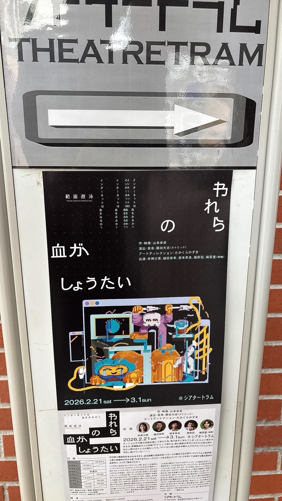 事前に少し紹介文等を読んでみる。2015年に描かれた作品が、AI全盛の今更に浮かび上がってくる…的な紹介をどこかで読んだように思う。先駆的なテーマ、という表現も読んだように思う。…でも、人間が機械に置き換わっていくときに感じる感覚みたいなものはこれまでたくさん描かれていて、何て使い古されたテーマをこれ見よがしなまどろっこしい演出で描く演劇なのだろう…という感覚。AlexaやSiriのような音声による対話コマンドが実社会に出始めた2015年頃の作品らしく、それらを使った演出が多用される。作中にAIに対する新たな言説が感じられるわけでもなかった。「われらの血がしょうたい」のタイトルの通り、人間って血が流れているから人間なんだよな…などと寺山修司みたいなことを考えてみるも、やはりどこか既に確立されている古さを敢えて描いている感覚から逃れられない。単純に再演であれば、時代性のギャップも含めて楽しめるのかもしれないが…額田大志の新演出が、むしろ古さを強調する形になった。